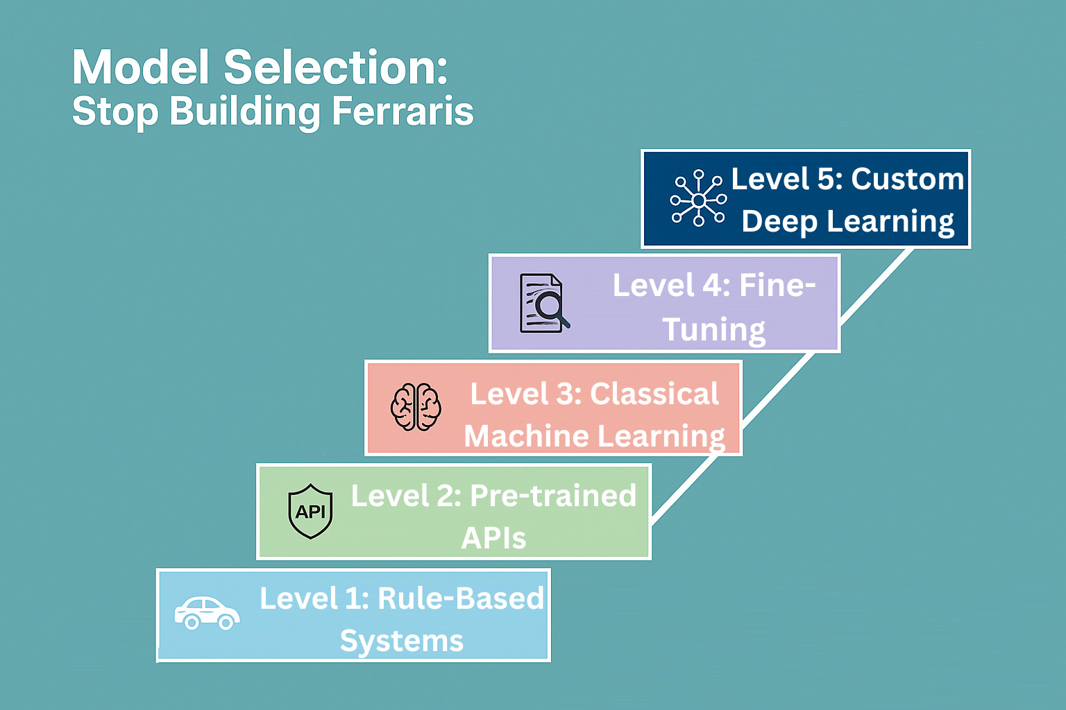 Level 5: Custom Deep Learning. Use only for unique problems with massive datasets and a dedicated research team.